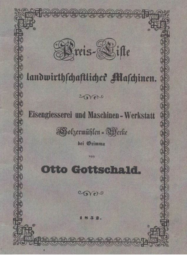 Auf dem Gelände der Golzermühle, links vom Mühl graben, betrieb Schlossermeister Hammer, eine kleine Nagelschmiede. Schon ein Jahr später, 1848, kaufte Gottschald diese auf eigene Rechnung für nur 2000 Taler und begann mit dem Bau einer Eisengießerrei und Maschinenwerkstatt zur Herstellung von Gusswaren und landwirtschaftlichen Geräten. Gottschald, technisch sehr interessiert, verstand es immer wieder, jeden Fortschritt erfolgreich in der Produktion umzusetzten. Seine Erzeugnisse hatten deshalb auf Messen und Ausstellungen wiederholt Preise errungen. 1861 besuchte sogar König Johann die Maschinenbauanstalt. Während der Bauphase der Papierfabrik ab 1860 kam Gottschald in engen Kontakt mit Jean Nötzli von der Firma Escher & Wyss, Zürich. Die Anwesenheit von Nötzli in den Golzermühlenwerken bewirkte, dass es zu einer entscheidenden Änderung im Produktionspogramm der Maschinenfabrik kam.